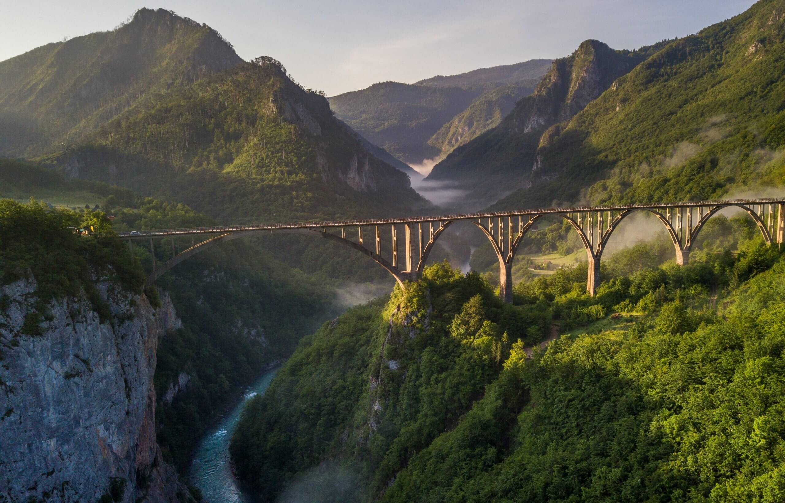 De Tara River Canyon is één van de mooiste en indrukwekkendste bezienswaardigheden in Montenegro. Het turquoise blauw van de Tara rivier slingert zich een weg door bergen van dichte, groene bossen.