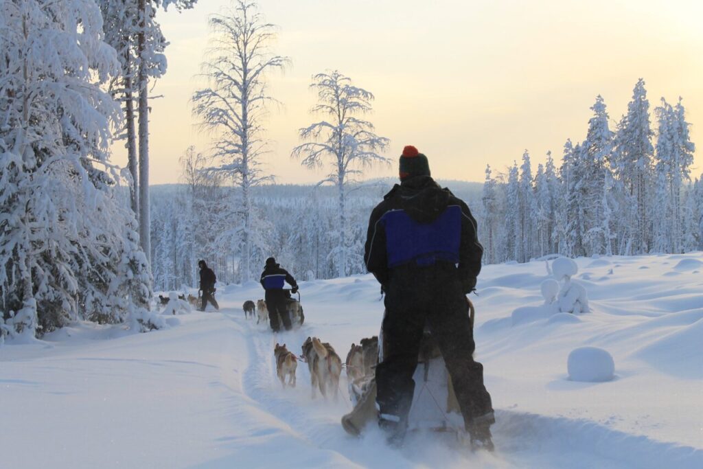 Tijdens een winterreis in Lapland beleef je activiteiten zoals huskysafari’s, sneeuwscootertochten en sneeuwschoenwandelingen door besneeuwde natuurgebieden. Ook kun je rendieren ontmoeten of nationale parken ontdekken waar de natuur nog volledig de hoofdrol speelt. In de avond bestaat bovendien vaak de kans om het noorderlicht te zien, wat een winterreis naar Lapland extra bijzonder maakt.